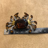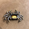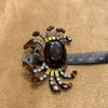 A beautiful brown, yellow and clear glass crystals in a shape of crab set on costume metal